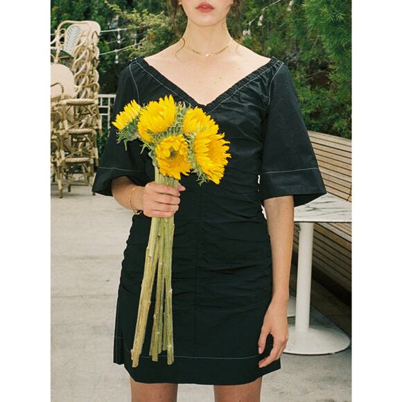 Ganni Poplin Black Cotton V-Neck Mini Dress Size 40: poplin v-neck mini dress.
