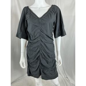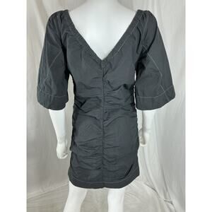 Ganni Poplin Black Cotton V-Neck Mini Dress Size 40