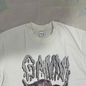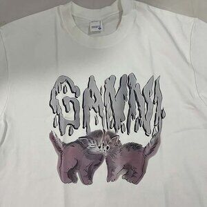 Ganni Purple Kitten White Round Neck Short Sleeves