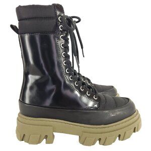 Ganni Quilted Nylon & Leather Combat Boot Size 35 US 5 Black Green $475