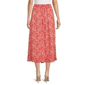 Ganni Red Floral Print Pull On Midi Skirt Size 34/2 NWT