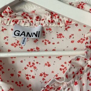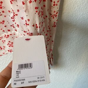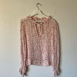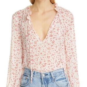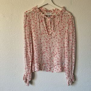 Details: Red, Floral Print, Ruffle & Bow Accents, Long Sleeve with V-Neck, Sash-Tie Closure at Front