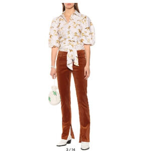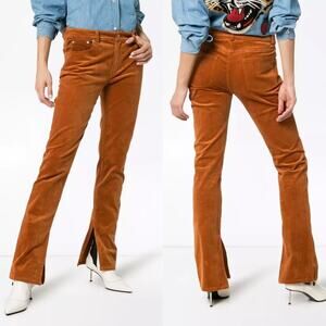 Ganni Ridgewood Burnt Orange Corduroy Split Hem Straight Leg Trousers Size 6