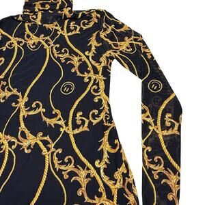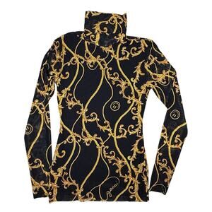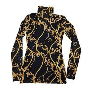 Ganni Rope Printed Mesh Roll Neck Top Size 36 = US 4 / small EUC