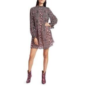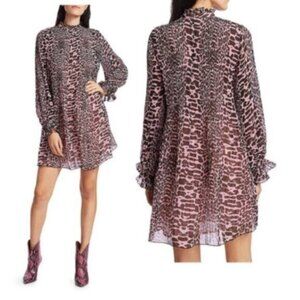 Ganni Rose Animal Print Pleated Georgette Boho Dress 40