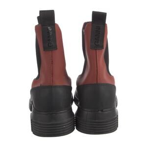 Ganni Rubber Rain Boots Black Red Lug Sole Waterproof Women’s Size 36 Pull On
