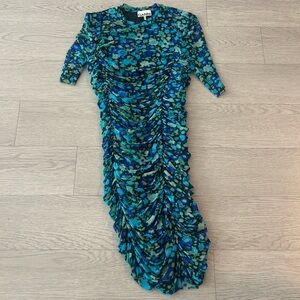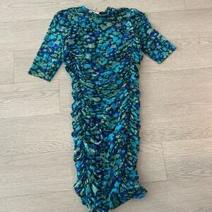 Ganni Ruched Floral Blue Mini Dress Size 36 US Small