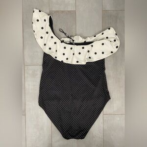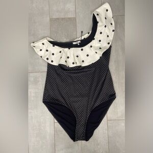 Ganni. Ruffled Polka Dot One-Shoulder Swimsuit Size EU40/US 8/10.