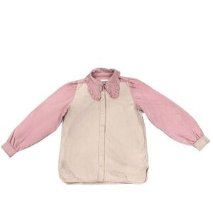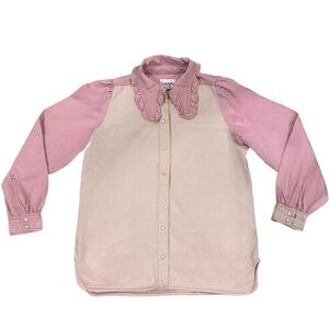 Ganni Ruffled Two-Tone Lilac Lavender organic Denim Shirt Jacket Shacked BNWT