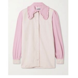 Ganni Ruffled Two-Tone Barbie Pink organic Denim Shirt