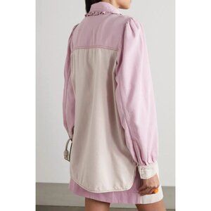 EUC; Ganni Ruffled Two-Tone Organic Denim Shirt