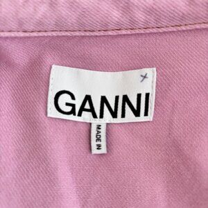 This pink GANNI ruffled collar lightweight denim shirt jacket (shacket) is crafted with organic cotton and cut for a relaxed fit.