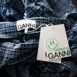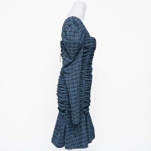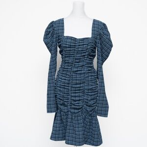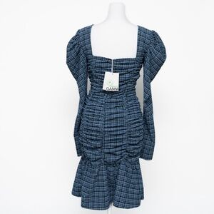Ganni Seersucker Black and Blue Checked Mini Dress