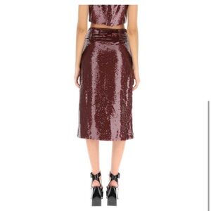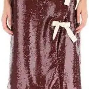 Ganni Sequin Midi Skirt with Bows - Burgundy size 34
