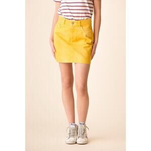 Ganni Shiloh Yellow Denim Mini Skirt High Waist Casual Festival Size 8 Women’s