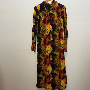 Ganni Silk Mix Multicolor Watercolor Print Midi Dress Women’s 38 US 6