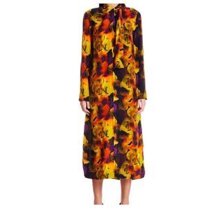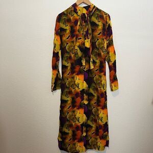 Ganni Silk Multicolor Warercolor Print Midi Dress Women’s 38 US 6