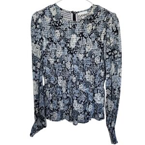 Ganni Smock Floral Blouse 36 Whimsigoth Designer Pastel Coquette Cottagecore