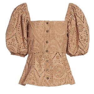 Eyelet is really in right now. Wear the top with the buttons open also really cute with a pregnant belly.