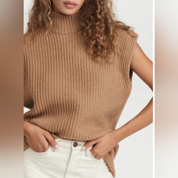 Sleeveless ribbed turtleneck sweater. Soft and stylish. Perfect for layering.