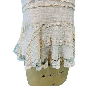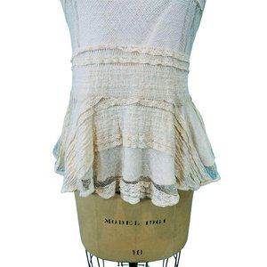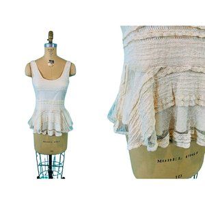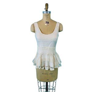 Ganni Tank Top Women's Small Beige Lace Peplum Scoop Neckline