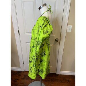 Ganni Ternder Shoots Green & Black Floral Printed Poplin Mini Dress, Size 4 | 36