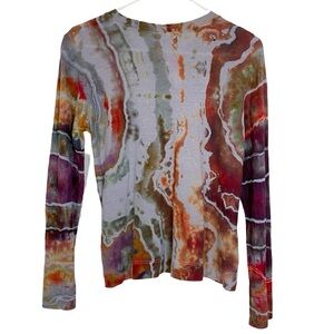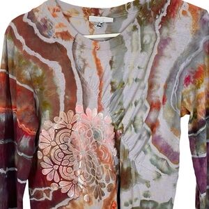 Ganni Tie Dye Shirt Womens Medium Large Tee Top Blouse Floral Hand Painted Grey