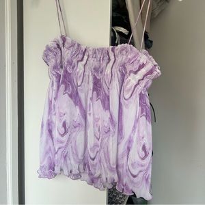 Ganni Tops | Ganni Purple and White Pleated Georgette Strappy Cami.