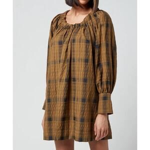 Ganni U- Neck Wide Mini Dress Butternut Size 38