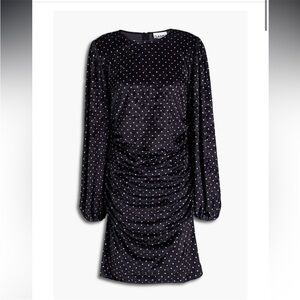 Ganni Velvet Ruched Polka Dot Mini Dress 36/4 Revolve Black White