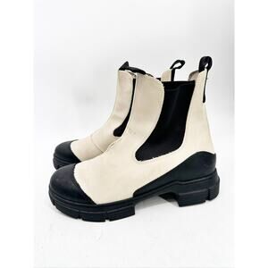 Ganni Waterproof Recycled Rubber City Boot in Brazilian Sand Cream Black Size 41