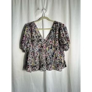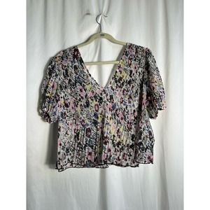 Ganni White Printed Pleated V-Neck Crop Top Sz 38 (medium