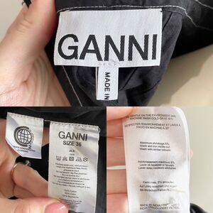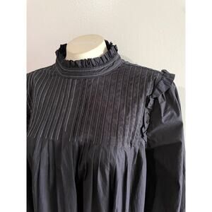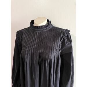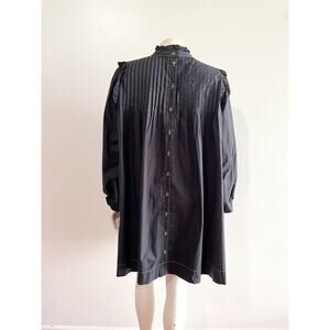 Ganni Women's Black Pintucked Cotton-Poplin Contrast Stitch Dress Size 36 Small