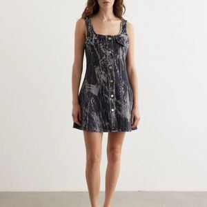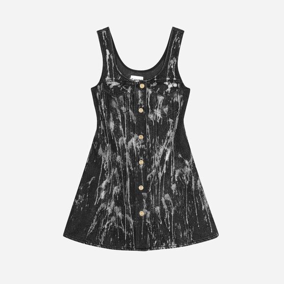 GANNI Heavy Denim Mini Dress, Washed Black/Black, SIZE 40