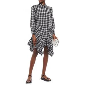 Ganni Women's Charron Checkered Seersucker Shirt Dress Asymmetrical Plaid B/W