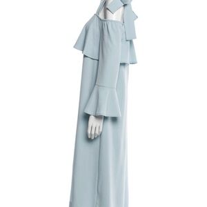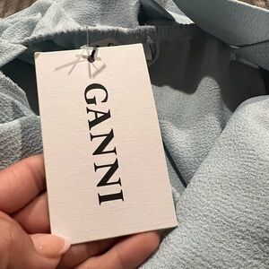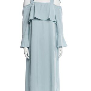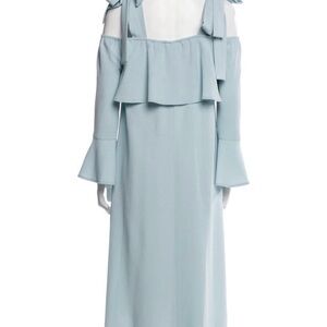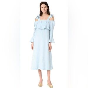 Ganni Women's Cold Shoulder Bow Dress Midi Clark Sterling Blue Size 36