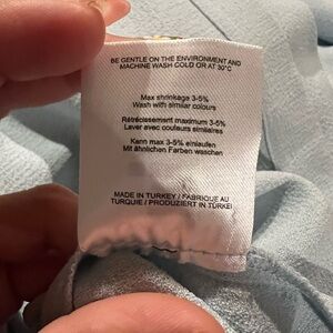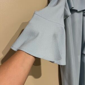 One stain on left sleeve and one small pin point stain under the ruffled chest piece (not visible while wearing dress) have not tried to remove stains as item has tags