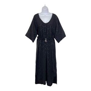 Ganni Womens Size 6 Black Viscose Jacquard Belted Midi Dress New NWT