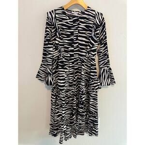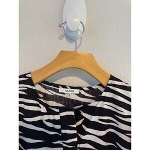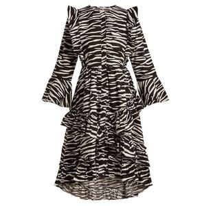 Ganni Women’s Zebra Animal Print Ruffle Modest Cotton Midi Dress Sz 38 (M)