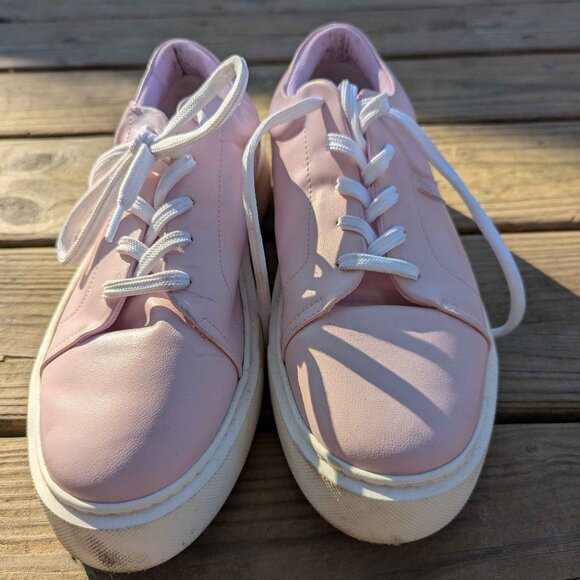 Cute baby pink sneakers, size 44 EU, fits like a US women's 12. Some wear around sole, otherwise good condition.