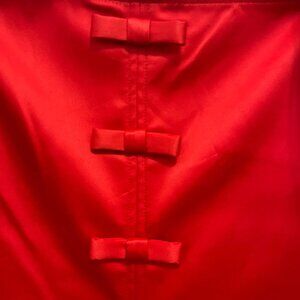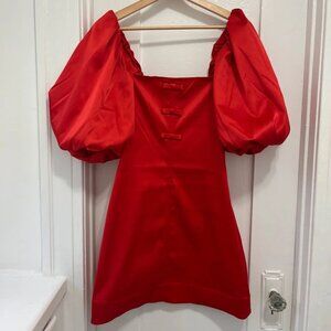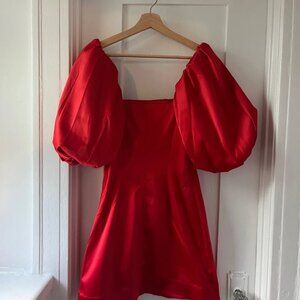 The most fabulous red satin mini dress! Worn to a red wedding and too pretty to stay stuffed in my closet...! Actually surprisingly flattering with the puff sleeve and stretchy (!) body.