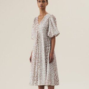 Ganni short Sleeve Dress Size 6 Beige Animal Print Short Sleeve
