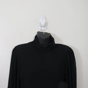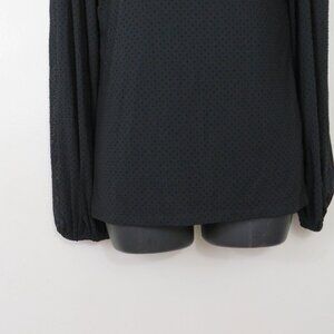 Ganni size 36 Polka Dot Top Blouse Long Sleeve Black Funnel Neck Strong Shoulder