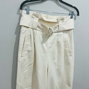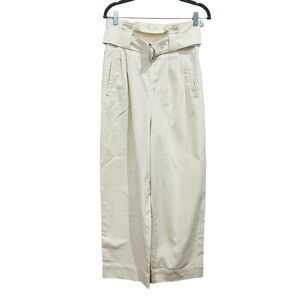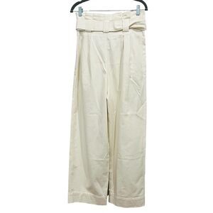 Ganni Cream Wide Leg Paper Bag Belted Trouser Pants Size 38 Small
