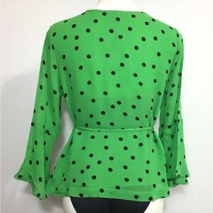 Ganni Dainty Georgette Wrap Tie Waist Emerald Green Wrap Blouse New Size 38