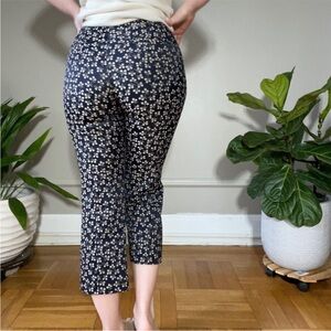 Silk floral cropped pants with side zip pockets. Almost mini tulips pattern