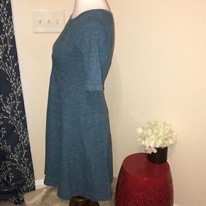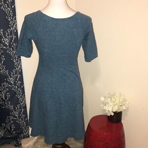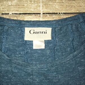 Good, preloved condition. Ganni Threaded Trails Winter Jersey Dress. Shade of blue. Short, almost elbow length sleeves. Fit and flare. Typical signs of wear.