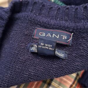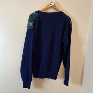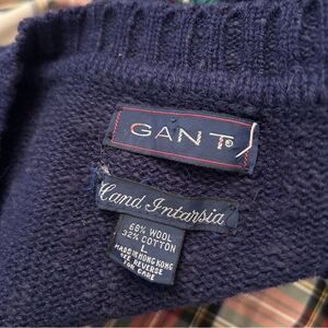 Gant Christmas holiday navy blue green red plaid v-neck natural fiber sweater me