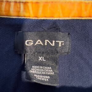 Gant Polo Shirt Men's XL Blue w/ Multi Colored Collar & Cuffs 100% Cotton Retro
