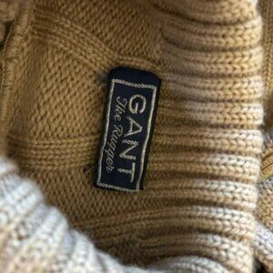 Gant Rugger Beige Wool Hoodie Jacket sz M RARE Cable Knit Sweater Varsity Preppy